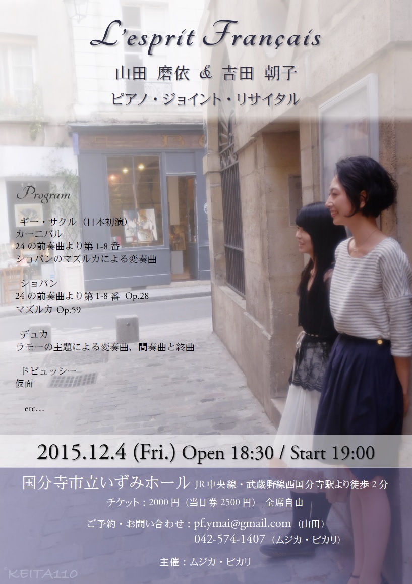 12月4日いずみホール(東京・西国分寺)でのコンサートのチラシが仕上がったので、お知らせ致します。